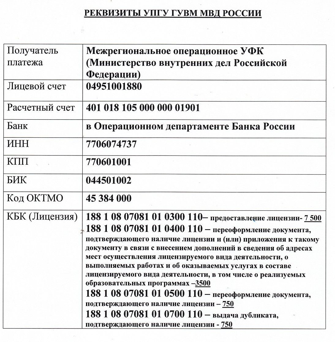 Вам нужно понять основу. Она заключается в том, что у вас есть Банковские реквизиты (и наименование получателя) для оплаты штрафа за отсутствие прописки. Это самое главное. Отталкиваемся от этого.